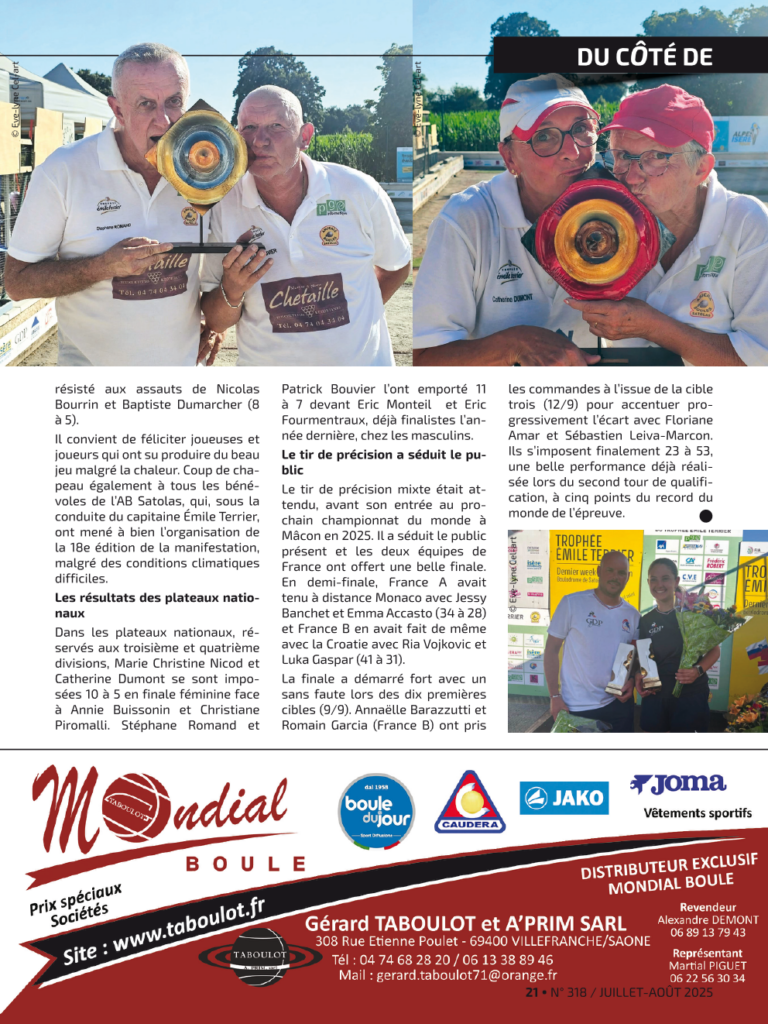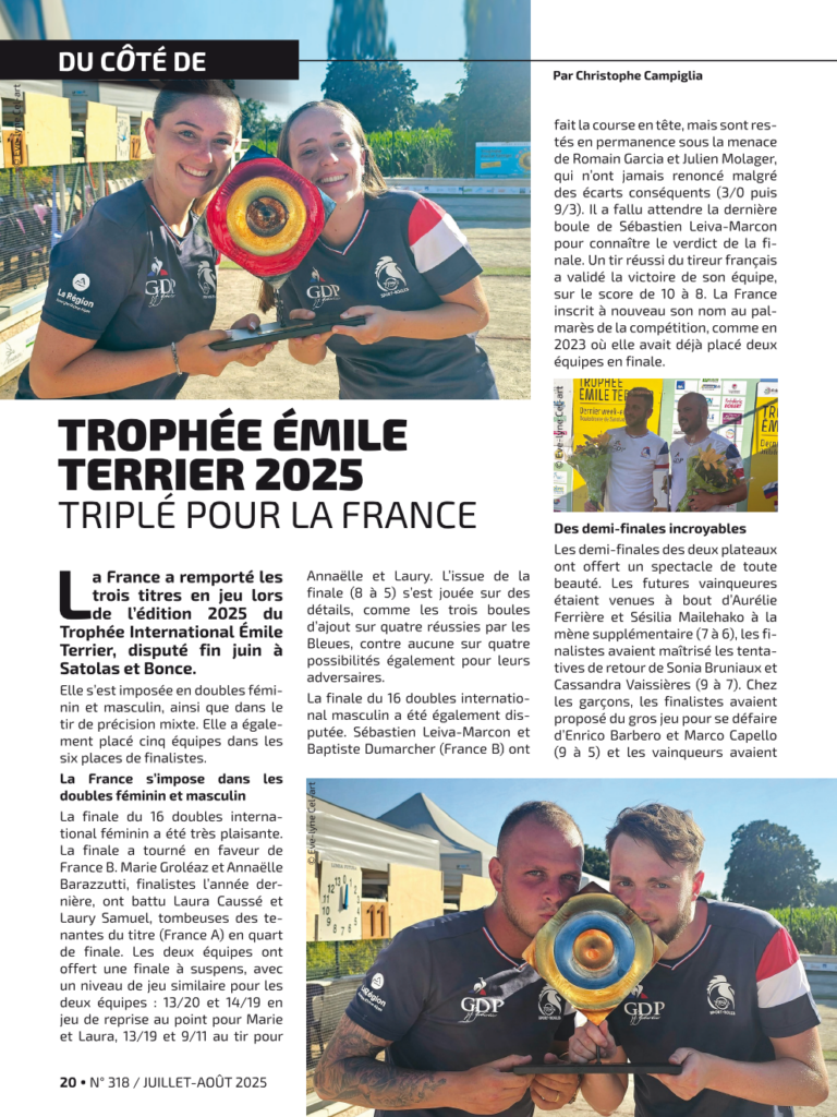 Article de Christophe Campiglia dans le magazine SBM n°318 de Juillet Août 2025 de la FFSB – Fédération Française du Sport Boules.